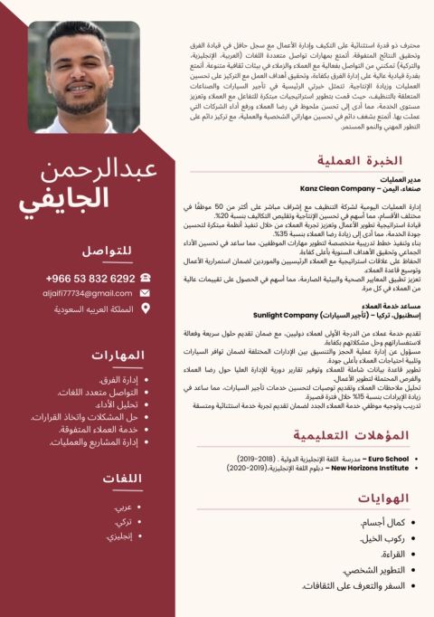 الاسم عارف الرحمن الجنسية بنغلادش اعمل سوبر فايزر وأجيد الحسابات وأجيد اللغة الانجليزية + كاشير ولدي المعرفة ببرنامج نزيل الفندقي وعملت في الاستقبال