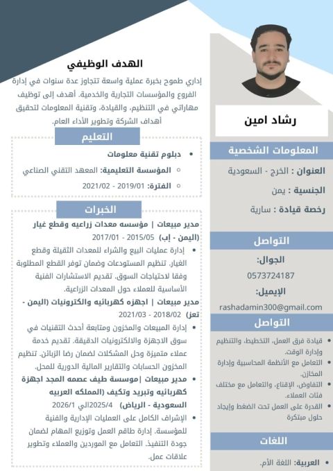 خبرة كبيرة في المملكة وخبرة في المبيعات السن داخل في 25 سنة معيا رخصة نقل ثقيل وكارت سائق وإقامة ابحث عن عمل