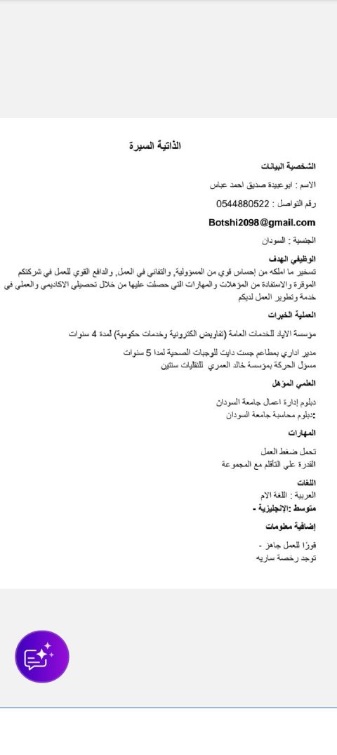 الاسم أبو عبيدة صديق أحمد العمر 38 المهنة سائق خاص إقامة سارية رخصة سارية