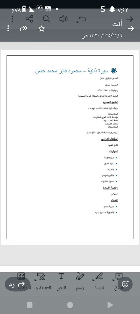 خريج جامعي أجيد القيادة وأتحمل ضغط العمل أحمل رخصة سائق مركبات كبيرة. عملت سابقا سائق (وايت) لتوزيع مياه الشرب شمال المملكة (بالقريات) لمدة قرابة أل 5 سنوات ابحث عن عمل سائق نقل عام أوخاص أو أي عمل مناسب في أي منطقة بالمملكة. الرخصة سارية والإقامة أيضا سارية