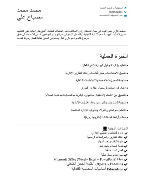 مشرف هاوس كيبينج وموظف استقبال فندقي خبرة في مجال الفنادق لأكثر من 10 سنوات في فنادق مصر والسعودية وعلى علم تام ببرنامج نزيل للتسكين وبوكينج للحجوزات وتقفيل اليوميات والموازنة ومراجعة العقود ابحث عن فرصة عمل / مصري الجنسية / إقامة سارية