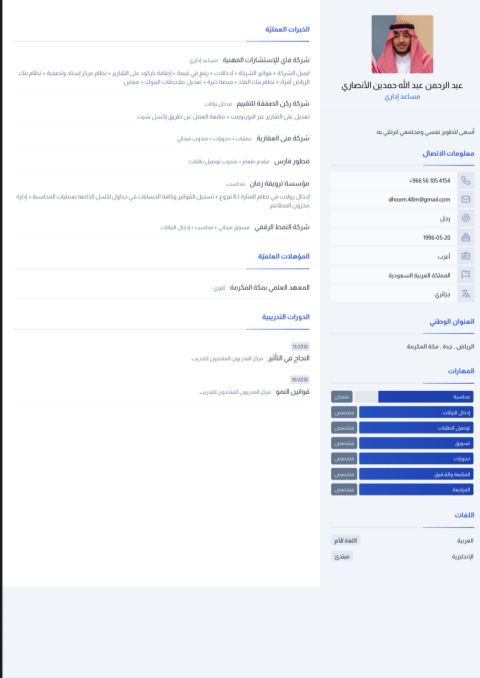موظف بشركة استقدام يبحث عن عمل خبرة 6 سنوات أجيد العمل على موقع مساند (المكاتب الخارجية، ادارة مكاتب الاستقدام مساند الأفراد) والتواصل مع المكاتب الخارجية ومتابعة سير استقدام العمالة وادارة الحسابات مع المكاتب الخارجية وأيضا الاستقبال وخدمة العملاء والدراية التامة بجميع المواقع والخدمات الالكترونية وأتقن الانجليزية تحدثا وكتابة