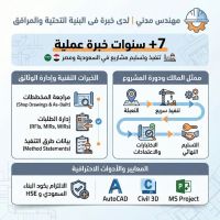 مهندس مدني بخبرة عملية + 7 سنوات في تنفيذ وتسليم مشاريع البنية التحتية والمرافق ومحطات الضخ في كل من المملكة العربية السعودية وجمهورية مصر العربية