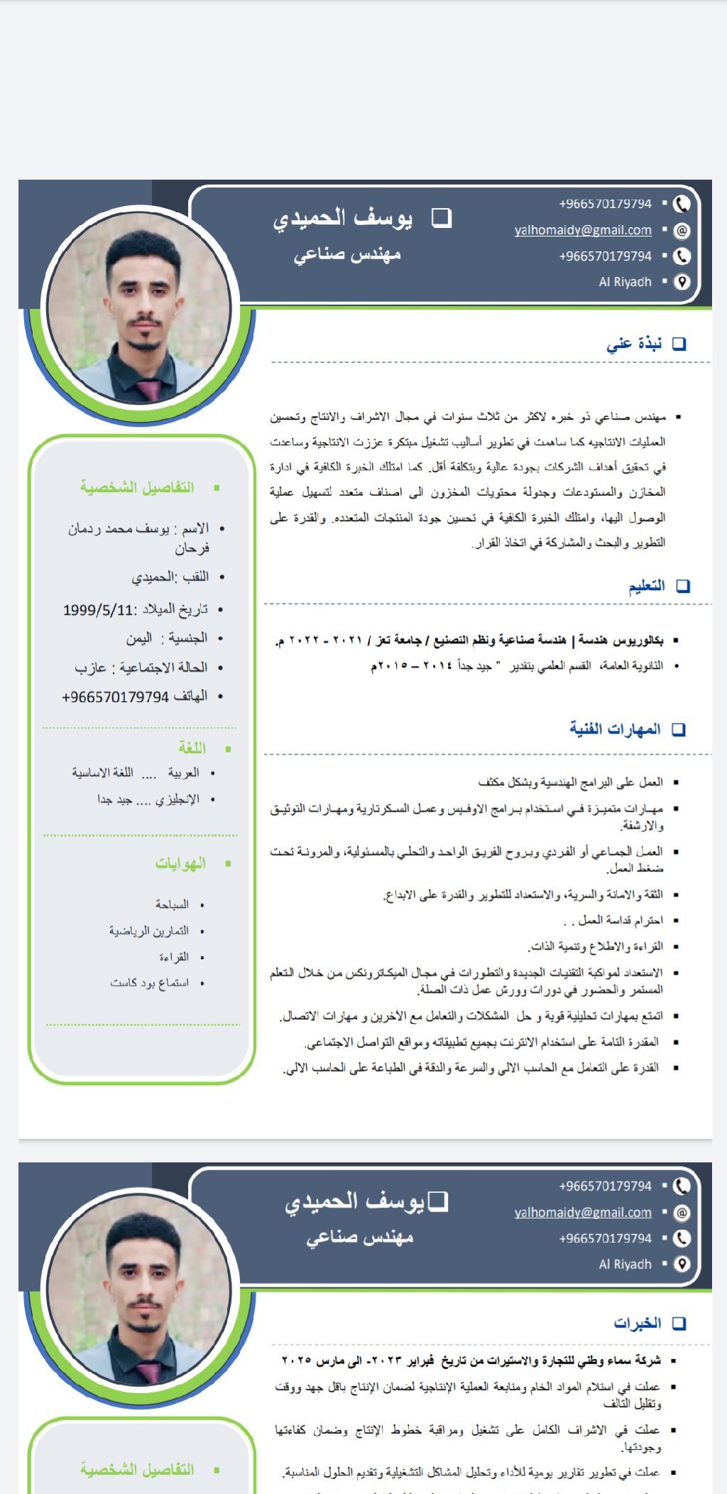 أنا مهندس صناعي ذو خبرة لأكثر من ثلاث سنوات في مجال الادارة الاشراف، الانتاج، ادارة المخزون، وضبط الجودة المشتريات وتحسين العمليات الانتاجية. كما ساهمت في تطوير أساليب تشغيل مبتكرة عززت الانتاجية وساعدت في تحقيق أهداف الشركات بجودة عالية وبتكلفة أقل. كما عملت مسؤول حركة ووقت وأمين مخزن قطع الغيار ومشرف انتاج ومبيعات