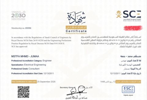 مهندس كهربائي - برتبة مستشار. مهندس كهربائي برتبة مستشار، مقيم في جدة، يمتلك خبرة واسعة في تصميم وتنفيذ المشاريع الكهربائية وإدارة الصيانة والمرافق قادر على اعداد الدراسات الفنية، جداول الأحمال، ومشاريع الطاقة الشمسية، بالاضافة الى الاشراف على فرق العمل وضمان تطبيق معايير السلامة والجودة. متاح للعمل في جميع مدن المملكة