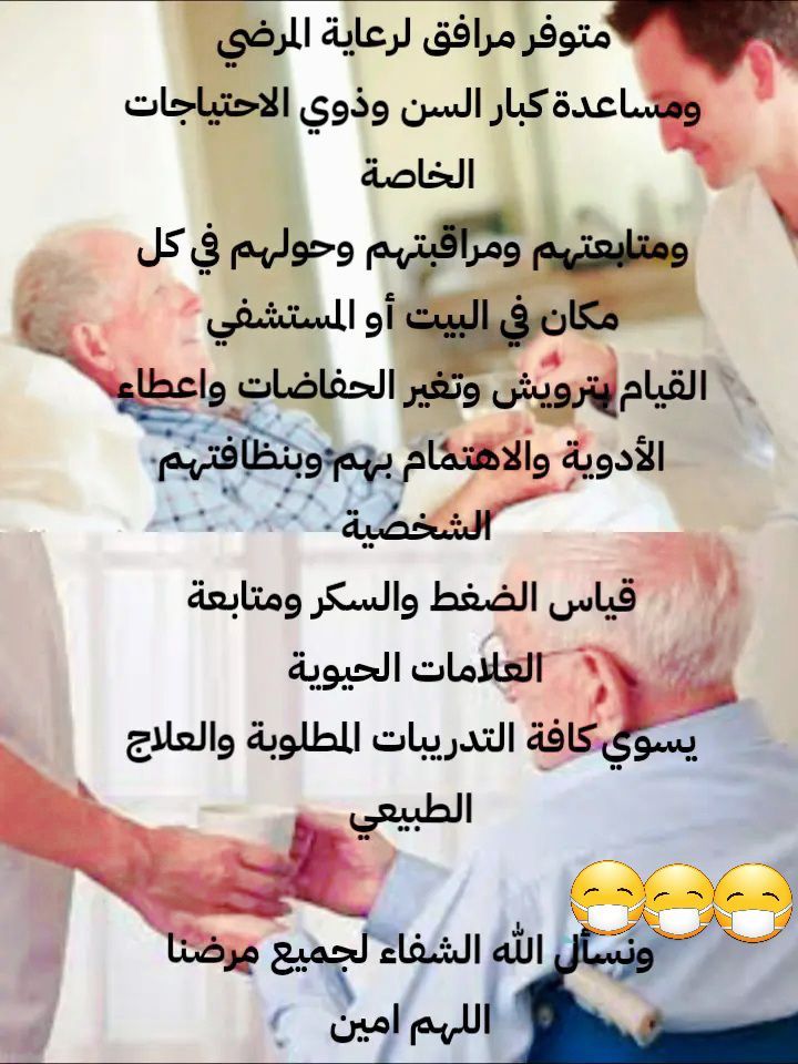 متوفر الآن. مرافق للكبار السن والمرضي. ذو خبرة في مجال مرافقة المرضي وكبار السن وكيفية التعامل معاهم يقوم بكل ما يتعلق بالمريض من ترويش وتغير الحفاضات واعطاء الادوية ومتابعة العلامات الحيوية الاهتمام بهم وعنايتهم ورعايتهم وتلبية احتياجاتهم وعمل ع راحتهم ومتابعتهم ومراقبتهم وحولهم في كل مكان