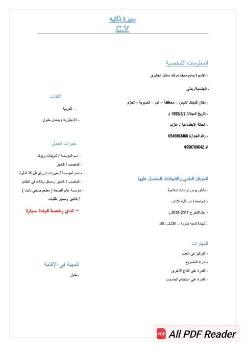 مهندس ميكانيكا (Sinoer mechanical engineer) خريج 2013م، موجود بالمملكة منذ العام 2017 عملت مهندس صيانة وتشغيل وتركيب وتوريد لفترات، وأيضا رئيس للأعمال الميكانيكيه (صرف + تغذية + حريق + تكييف + مصاعد) لفترات، ولدي اعتماد من شركة المياه الوطنية NWC ومن شركة تطوير المباني TBC إقامة سارية، تصنيف في هيئة المهندسين (محترف ساري الصلاحية) متاح نقل كفالة، ابحث عن فرصة عمل في شركة محترمة وملتزمه وطموحه