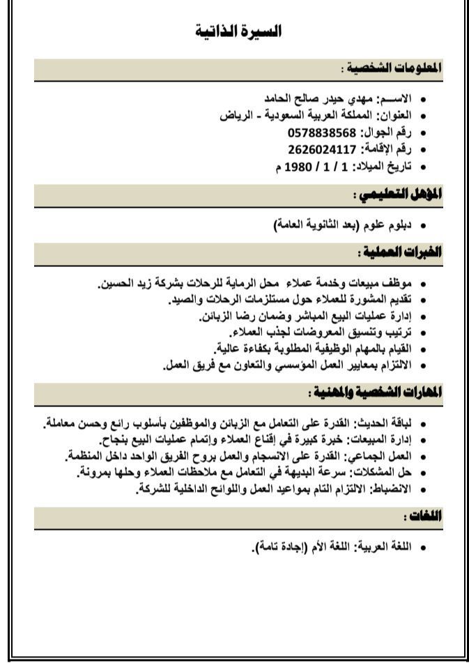 أنا مهدي حيدر صالح الحامد يمني الجنسية المستوى الدراسي دبلوم بعد الثانوية أطلب عمل في أي مجال بائع في معرض لدي الخبرة في البيع والشراء والمعاملة مع الزبائن ولدي القدرة في العمل في مستودع أغراض وترتيب الاغراص والاشراف عليها