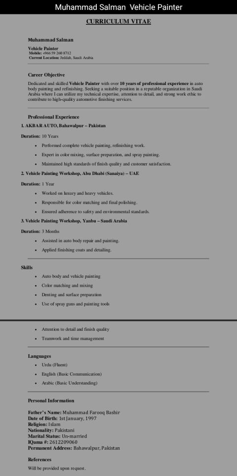 I am looking for a suitable job opportunity within the Kingdom of Saudi Arabia. I have good experience in multiple fields, with the ability to be committed, diligent, and handle work pressure. I aspire to join an organization that values