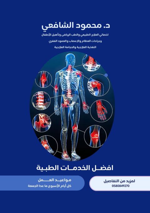 أخصائي العلاج الطبيعي والتأهيل لجراحات العظام والأعصاب والعمود الفقري وتشواهات العمود الفقري. أخصائي العلاج الطبيعي للاطفال وذوي الاحتياجات الخاصة والشلل الدماغية. التغذية العلاجية. العلاج الطبيعي لاصابات الملاعب وتحسين الأداء الحركي - الحجامة العلاجية. الابر الجافة وجلسات الاستشفاء العلاجية. جلسات العلاج الطبيعي المنزلي