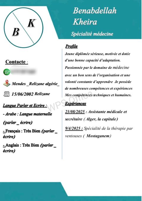مساعدة طبية حاصلة على دبلوم أيضا سكرتيرة طبية. وأخصائية تدليك طبيعي وحجامة من الجزائر ابحث عن شاغر وظيفي في السعودية