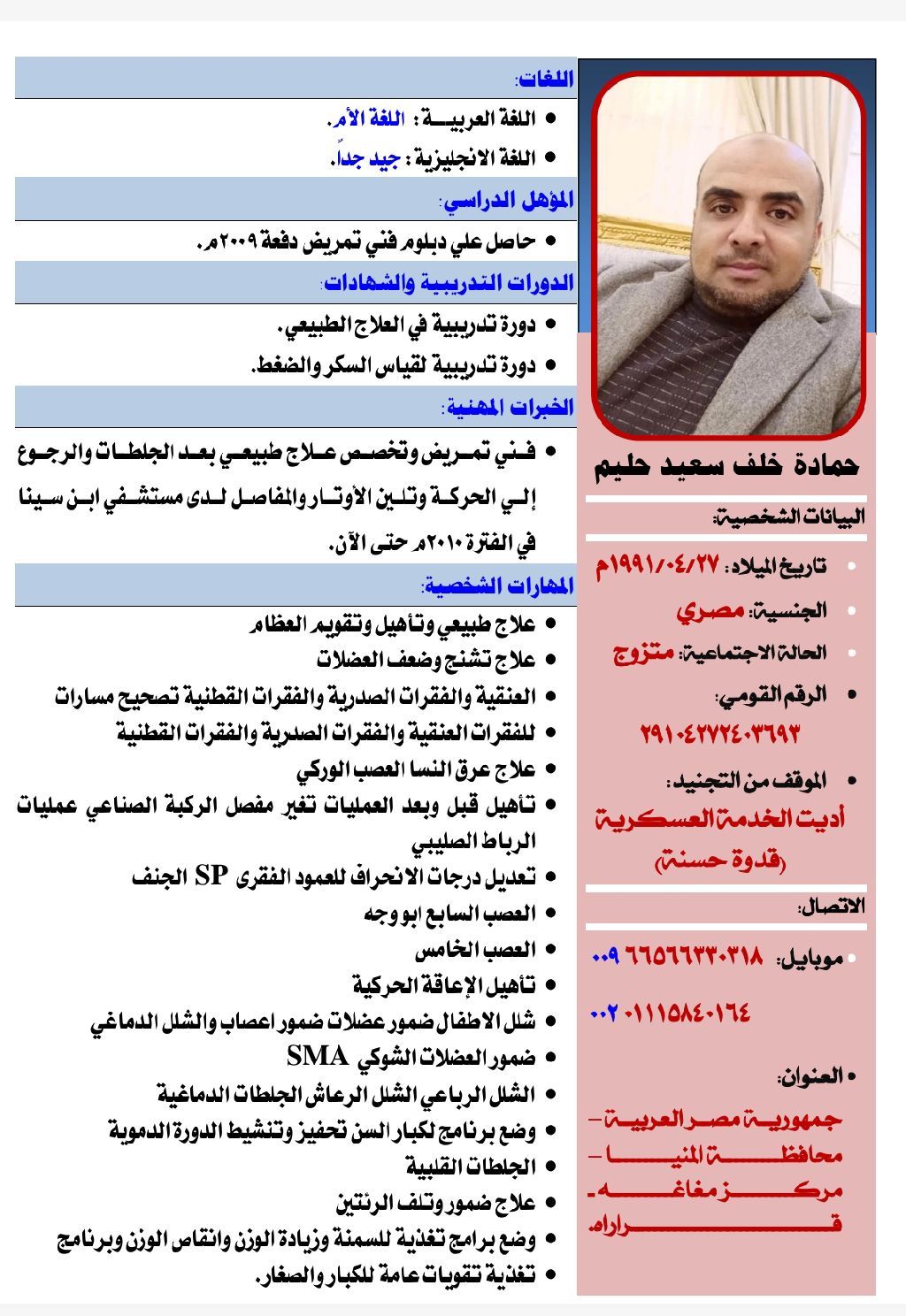 And physical therapy specialist for all nerves and tendons in the human body Or after strokes and aortic dissection he has experience in everything that a patient needs, whether young or old