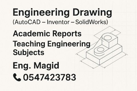 معلم مادة الرسم الهندسي باستخدام برامج الكاد (Inventor - Solidwork - AutoCAD) لعمل التساليم والواجبات وعمل التقارير والبحوث الأكاديمية