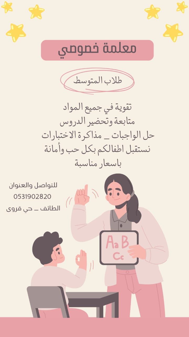 معلمه لصفوف المتوسطه (مواد عربية أو انجليزيه)