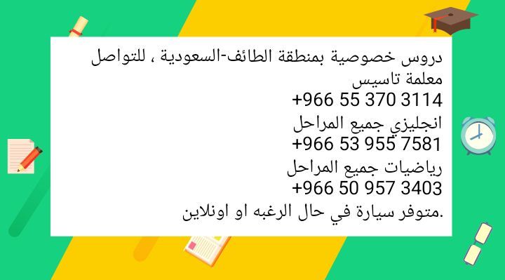 دروس خصوصية ومتوفر قدرات كذلك يرجى التواصل على الأرقام الموجودة