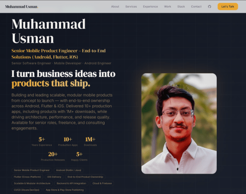 أنا مهندس برمجيات منتجات متكامل (Full - Stack) بخبرة تزيد عن 5 سنوات في بناء حلول متكاملة من البداية الى الاطلاق عبر تطبيقات الموبايل (Kotlin وFlutter وiOS / Android الأصلية) والويب، وأنظمة الباك اند. أتخصص في تصميم البنية، وخطوط CI / CD، ودمج أنظمة الدفع، ونشر التطبيقات. امتلك مهارات في Kotlin وFlutter وJava وDart وواجهات APIs وقواعد البيانات وDevOps. لدي خبرة في قطاعات التقنية المالية، والرعاية الصحية