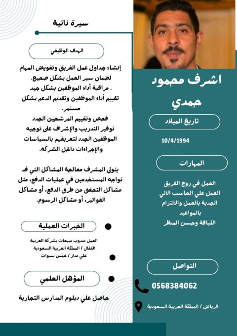 أنا طارق محمد (26 عاما) مندوب مبيعات مصري، مقيم في الخبر (الثقبة امتلك سجلا في تجاوز الأهداف وابحث عن تحد جديد. خبرة مثبتة في الاستماع النشط تحديد احتياجات العملاء بدقة. التفاوض الاحترافي حل اعتراضات السعر واتمام الصفقات الكبرى. اغلاق الصفقات (Closing) تحويل الفرص الى ايرادات مباشرة. تحليل الأداء (CRM) استخدام البيانات لتحسين خطط المبيعات