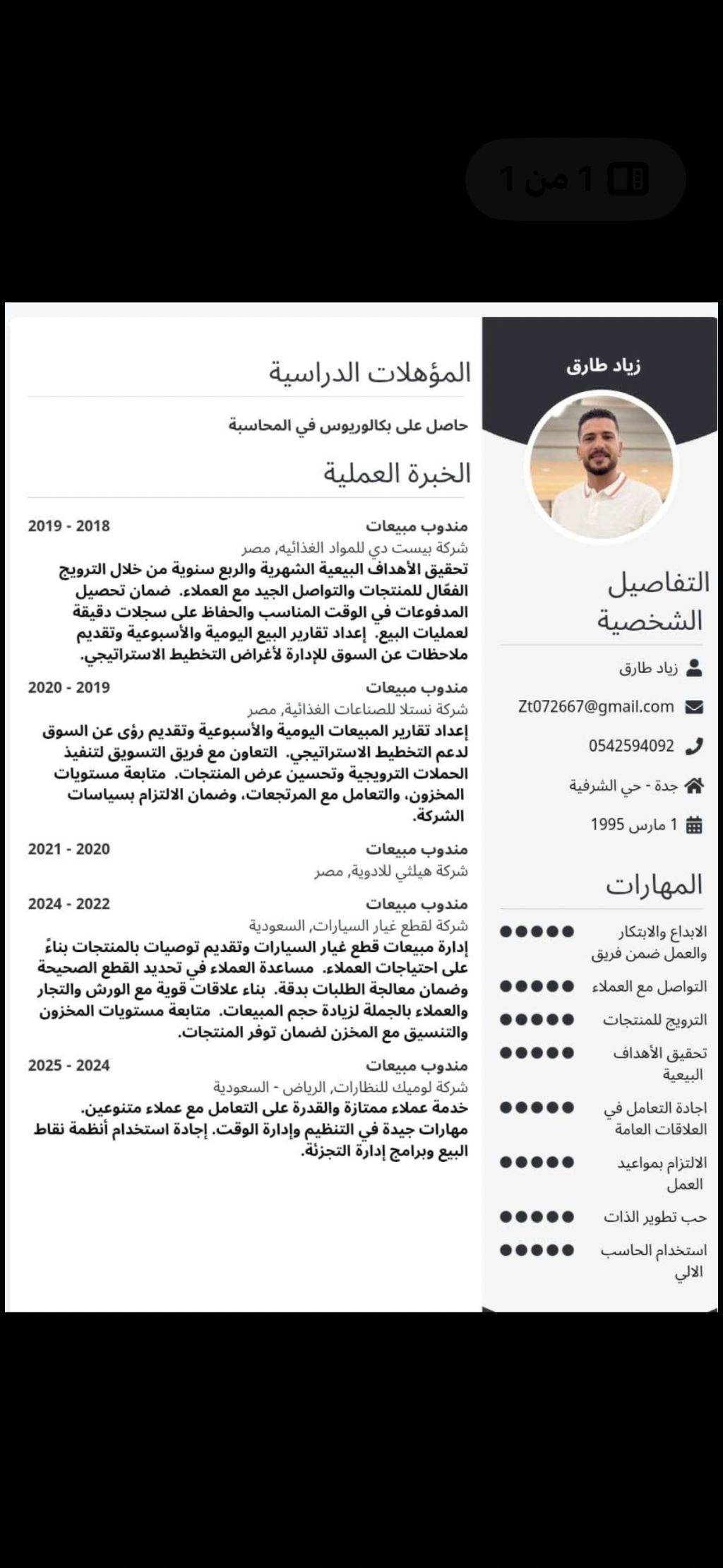 زياد طارق الماوردي مصري الجنسية خريج بكالوريوس محاسبه ابحث عن فرصة عمل كمندوب مبيعات موظف خبرة في التعامل مع العملاء وتحقيق الأهداف