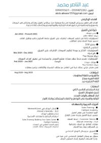 موظف مبيعات ومدير فرع بخبرة قوية في تنظيم المبيعات، الاشراف على الفرق، وتحسين تجربة العملاء. امتلك مهارات تواصل ممتازة وتحمل ضغط العمل، وأسعى للانضمام الى جهة احترافية أساهم في نجاحها وأطور من خلالها خبرتي