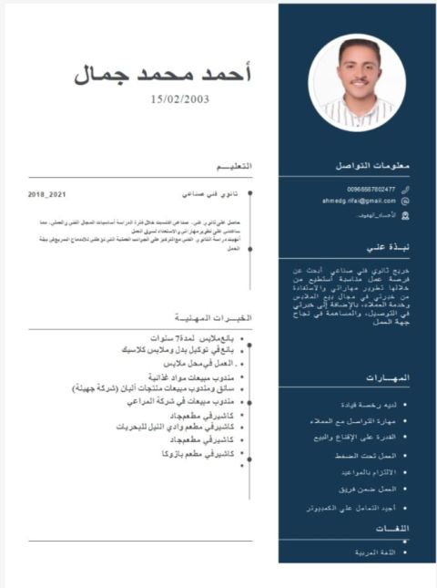 باحث عن فرصة عمل في مجال المبيعات أو الصيدليات، أو مندوب علمي أو مصنع ادوية لدي خبرة في العمل كمبيعات ومدير فرع صيدلية، وأتميز بحسن التعامل مع العملاء، إدارة الفريق، تنظيم العمل، وتحقيق الأهداف البيعية. أجيد العمل تحت الضغط، والالتزام بالدوام، وأسعى دائما لتطوير مهاراتي وخدمة العملاء بأفضل صورة