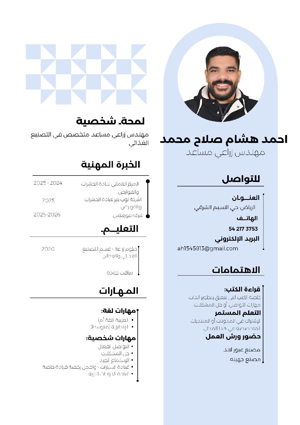 محتاج دوام مراقب جودة تخصص تصنيع مواد غذائية أو سائق في شركة أو كاشير أو مندوب مبيعات