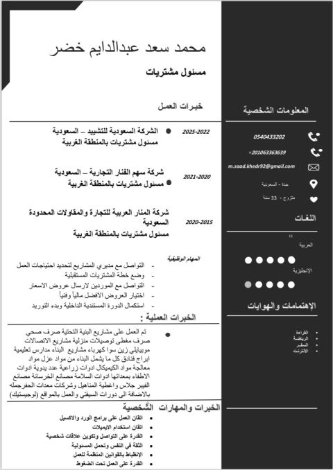 مندوب مبيعات مصاعد خبرة من 2014 كفنيات ومبيعات ومشتريات والعمل سنة في المملكة العربية السعودية