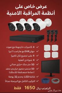 عروض حصرية لمدة أسبوعين عدد 4 كاميرات خارجية clour vu ملونة 24 ساعة مع هارد 2 تيرابايت مع جهاز تسجيل 4 مخارج مع 50 متر سلك مع 4 شواحن مع علب التجميع مع شاشة 32 بوصة فقط 1650 ريال شامل التركيب