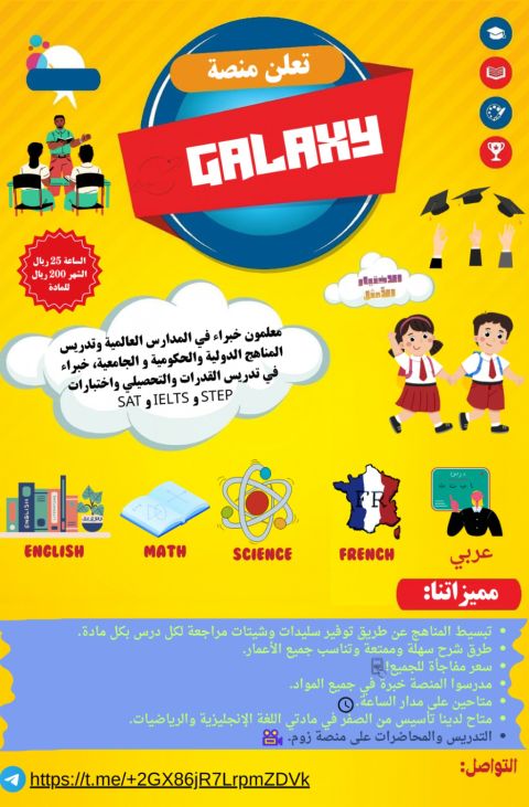 منصتنا تقدم دروس تقوية ومتابعة في جميع مواد اللغات والمواد العلمية والمواد العربية والدينية لجميع المراحل. منصتنا متاحة لطلاب المدارس العالمية والأهلية والحكومية وكذلك طلاب الجامعات. منصتنا تقدم كورسات ودورات في IELTS, SAT, STEP والقدرات والتحصيلي. منصتنا تقدم دورات تأسيس من الصفر في مواد اللغة الانجليزية والعربية والرياضيات. أسعار منصتنا رمزية وتناسب الجميع، للساعة 25 ريال لأي مادة، وهناك باقة اشتراك