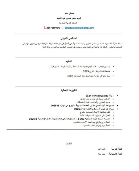 A general surveyor, I have practical experience in road and construction works, and I seek to work in a company with a professional environment that allows me to develop my surveying and technical skills