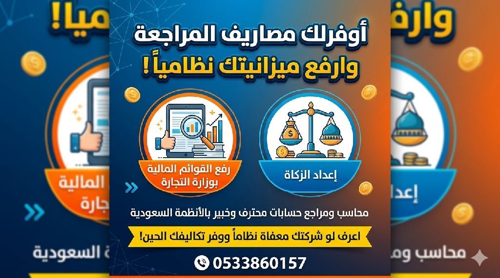 متخصص في اعداد الزكاة ورفع القوائم المالية بوزارة التجارة بأسلوب احترافي ودقة متناهية. رفع نظامي (بدون مراجع قانوني) للمنشاءات المؤهلة. اعداد اقرارات الزكاة والضريبة بأعلى دقة. متابعة الملف حتى الاعتماد النهائي. تواصل معي الآن وأعرف هل شركتك معفاة