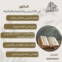 منهج تأسيسي متكامل في القراءة والكتابة - تأسيس متميز ومتكامل مهما كان مستوى الطالب دكتوراه في اللغة العربية - خبرة أكثر من 20 سنة في التأسيس - نتائجنا بفضل تشهد لنا - نحن الخيار الأمثل بإذن الله إجازة في حفظ القرآن الكريم بطريقة التلقين والتكرار مع مراعاة احكام التلاوة والتجويد - للتواصل