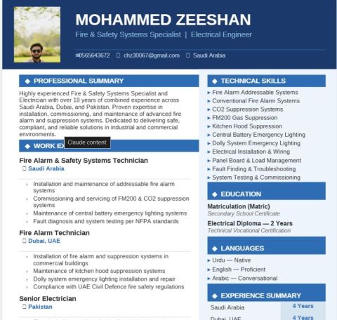 An electrical engineer with 15 years of experience in designing electrical plans using various design software, acoording to SBC, IEC, and NEC standards. Also experienced in technical office, design ashop drawing plans, Load calculation, V D panel Schedual and ( S L D Vendor list, Meterial approval, Estimating costs, and supervising subcontr on - site to do quantity jobs. Repors and Project ducuiment