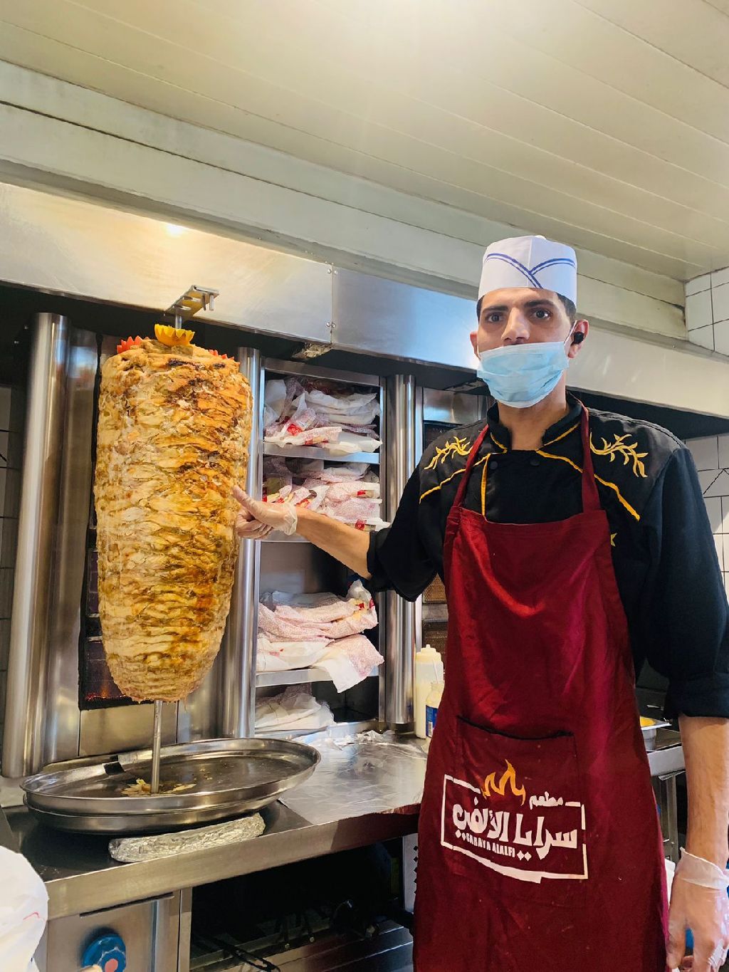 معلم شاورما غاز وفحم دجاج ولحم عمل الصوصات تتبيل والشك والقص وألف