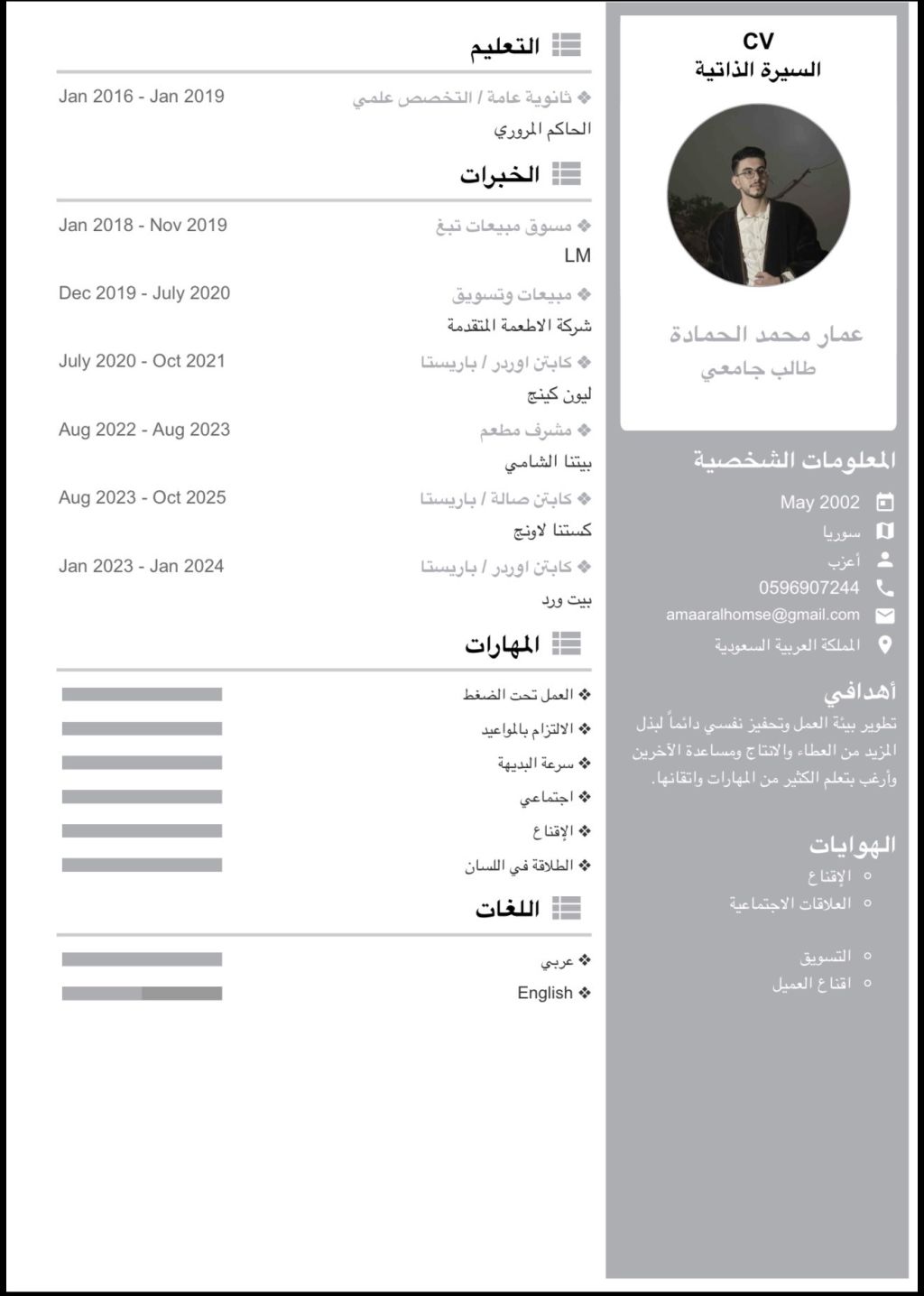 شاب سوري ابحث عن عمل عندي خبرة بالتعامل مع الزبائن اعمل كاتبن صالة وباريستا