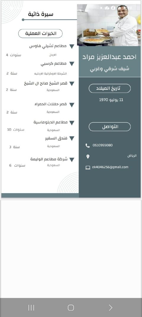 ابحث عن عمل في المطبخ أو استراحات أو منازل طباخ أحمد عبدالعزيز من مصر مقيم في السعودية، شيف سخن العمر 55 سنة خبرة 32 سنة في مجال المطاعم والفنادق