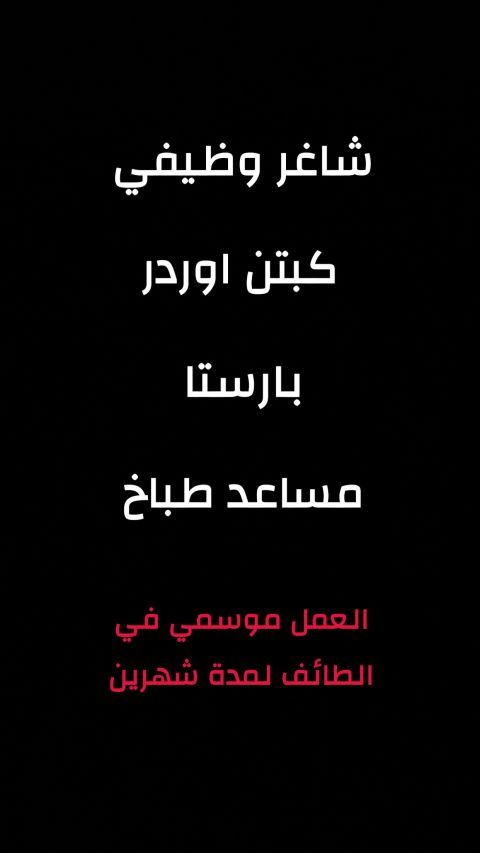 مطلوب شيف بيتزا مختصة للعمل علي فرن كهربائي يكون ذو خبرة طويلة الطائف طريق المطار