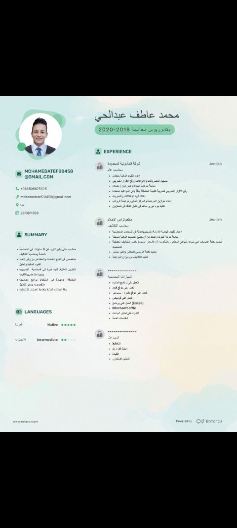محاسب خبرة 6 سنوات متاح جميع الأعمال المحاسبية وجميع خدمات الزكاة والضريبة عن بعد أو دوام جزئي