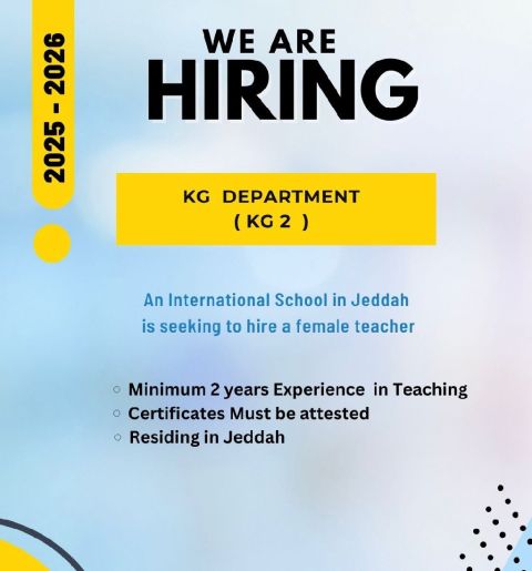 Homeroom teacher an international school in Jeddah is seeking to hire a female teacher