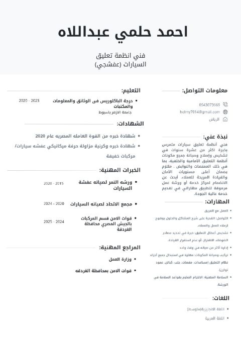 معلم زينه سيارات الخبرة 4 سنين المهنة عامل عادي