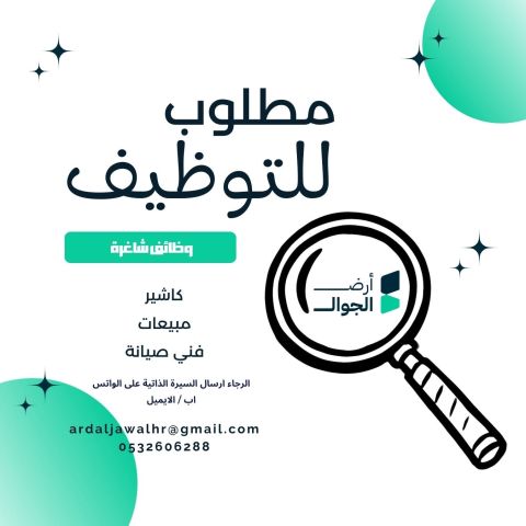 مطلوب موظفين للعمل لدى أرض الجوال في الرياض الوظيفة الشاغرة - فني صيانة نبحث عن أشخاص ملتزمين، جادين في العمل، ولديهم شغف بمجال الجوالات والخدمة المميزة للعملاء. مقر الادارة مخرج 29 للتقديم يرجى إرسال السيرة الذاتية عبر الواتساب أو الايميل التالي