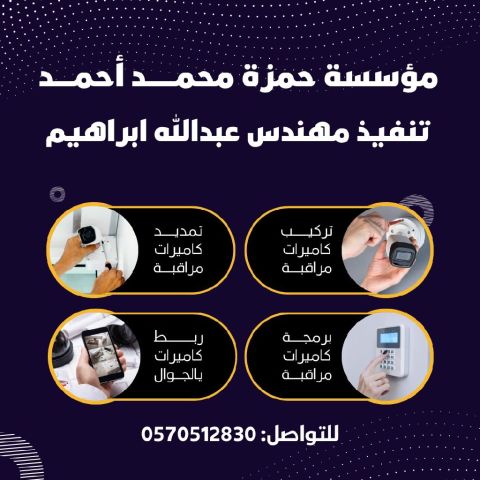 مؤسسة كاميرات بجميع أنواعها وشبكات وبرمجة وسنترالات وبرجكترات وفايبر صيانة وتركيب وتوريد ودش مركزي
