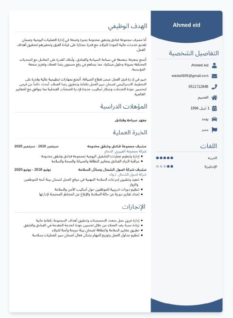 محمد سيد من مصر بكالوريوس سياحة وفنادق ابحث عن وظيفة عملت في مجال تأجير السيارات والمجال الفندقي لدي اقامة سارية لمدة عام
