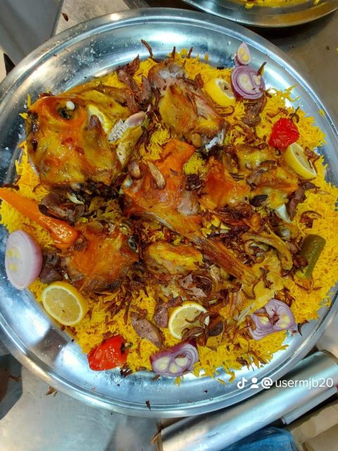 Name Majed Ali Muhammad Ahmad Al - Jalal, age 35 years, chef in the field of Kabsa and all kinds of side dishes, cooking slaughtered Mandi, Madfoon, Haneeth, and Kabsa, Mandi chicken, Madfoon chicken, Haneeth chicken, grilled Madhbi, rice with shawarma, Mandi rice, popular rice, Bukhari rice. This is for the chicken. As for the side dishes mixed minced musakhan, okra, in front of chicken, hand