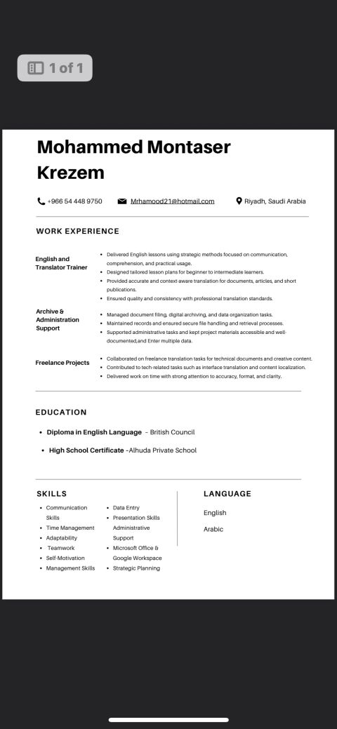 مترجم من لغة انجليزية الى لغة عربية والعكس لجميع الوثائق - حي الصفا - تبوك بالمملكة العربية السعودية - خبرة 16 سنة