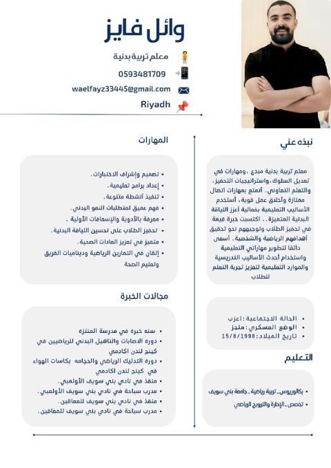 معلم تربية بدنية ومدرب سباحة لدي خبرة سابقه في النادي الأهلي المصري
