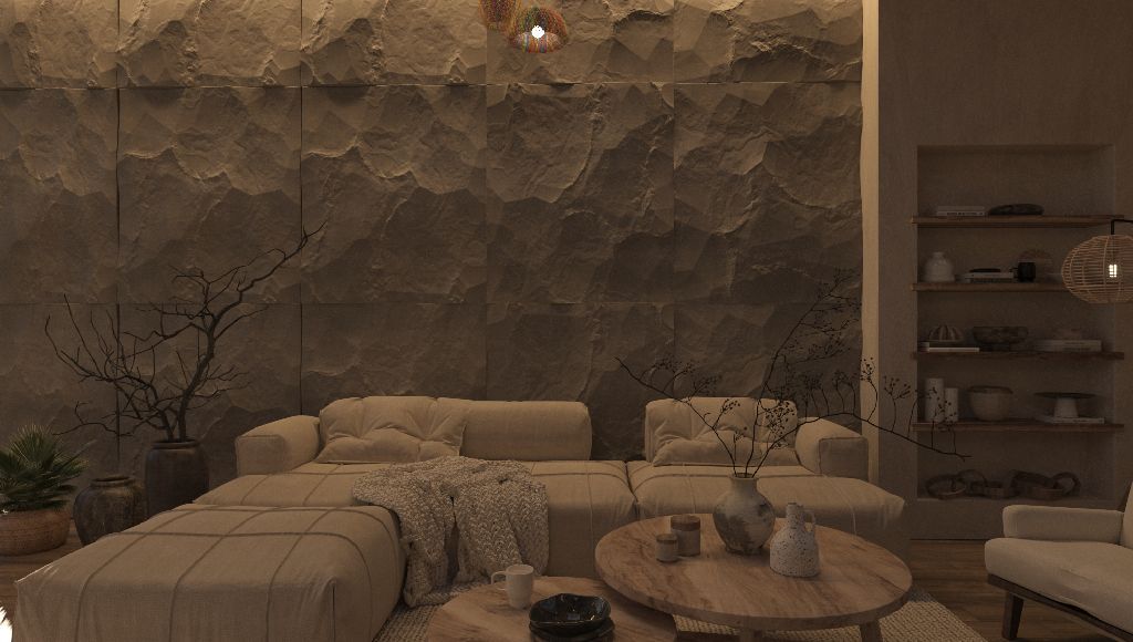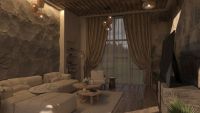 بكالوريوس هندسة ديكور تصميم لغرفة المعيشة لشاليه لطراز ريفي