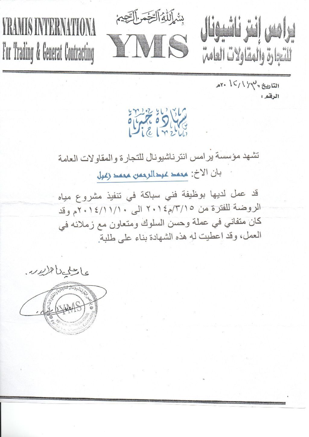 Name محمد عبدالرحمن زعبل Nationality Yemeni Age 35 Profession Welding technician and extension of pepat water projects with modern polyethylene system. Experience 10 years Practical experience An extension and fabricated polytechnic in the Polyethylene modern 10 years experience in the project of kindergarten. Experience in drinking water projects or large far